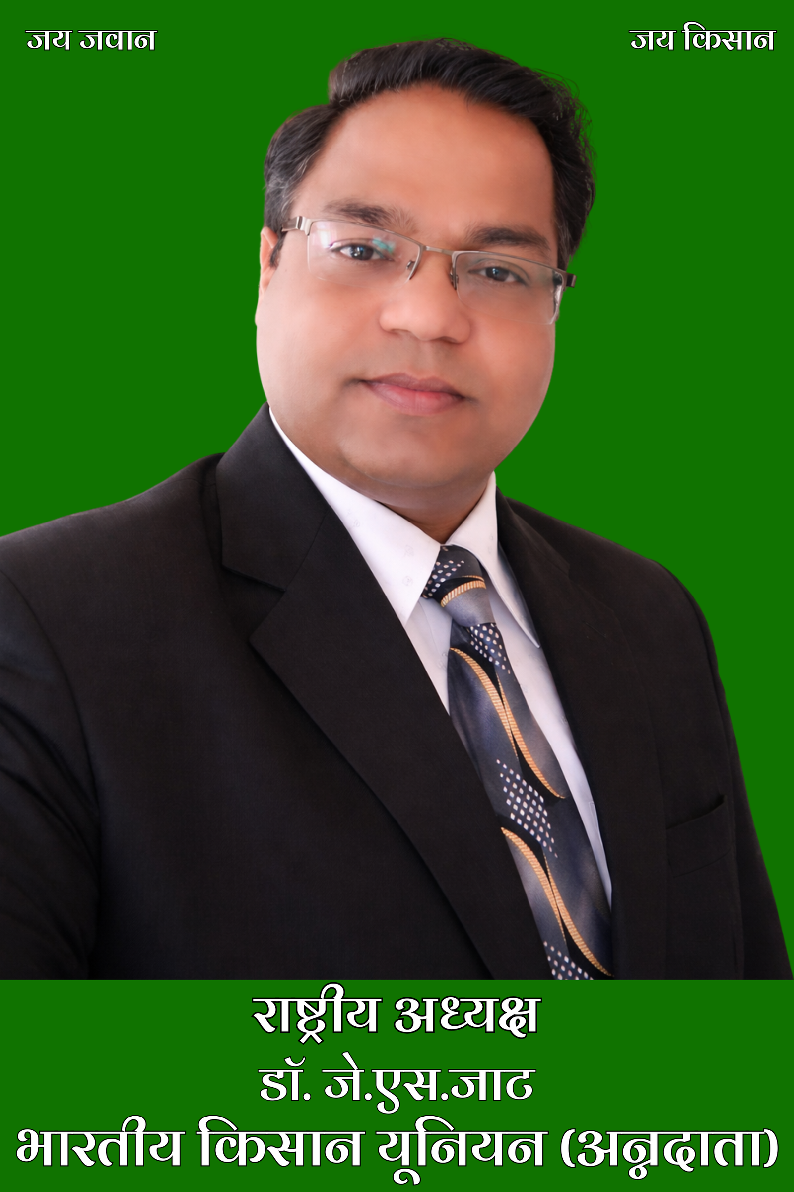 डॉ. जे.एस. जाट भारतीय किसान यूनियन (अन्नदाता) के राष्ट्रीय अध्यक्ष हैं। वे किसान हितों की रक्षा, सामाजिक न्याय और संगठित किसान आंदोलन को सशक्त बनाने के उद्देश्य से निरंतर सक्रिय हैं। उनके नेतृत्व में संगठन किसानों की समस्याओं को मजबूती से उठाता है और अन्नदाता को उसका अधिकार, सम्मान और न्याय दिलाने के लिए प्रतिबद्ध है। डॉ. जे.एस. जाट का दृष्टिकोण केवल आंदोलनों तक सीमित नहीं है, बल्कि वे किसानों की आर्थिक स्थिति को मजबूत करने, कृषि व्यवस्था में सुधार लाने और ग्रामीण समाज को जागरूक व आत्मनिर्भर बनाने पर विशेष बल देते हैं। उनका नेतृत्व भारतीय किसान यूनियन (अन्नदाता) को स्पष्ट दिशा, अनुशासन और विश्वास प्रदान करता है, जिससे संगठन देशभर में किसानों की सशक्त आवाज़ के रूप में कार्य कर रहा है।